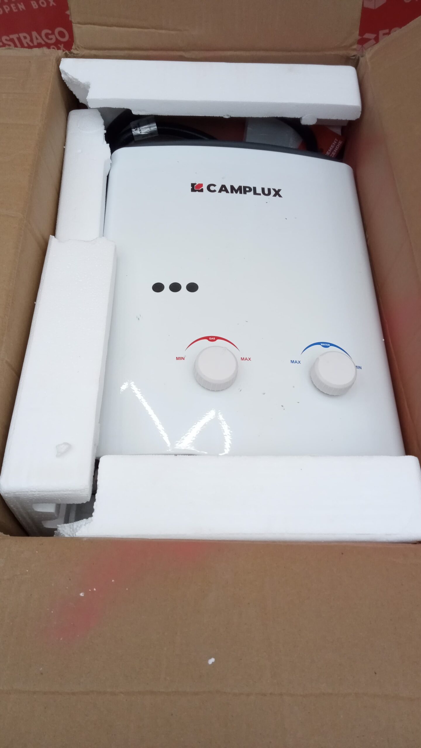 Calentador portátil de agua para exteriores sin tanque de propano Camplux 5L 1.32 GPM.