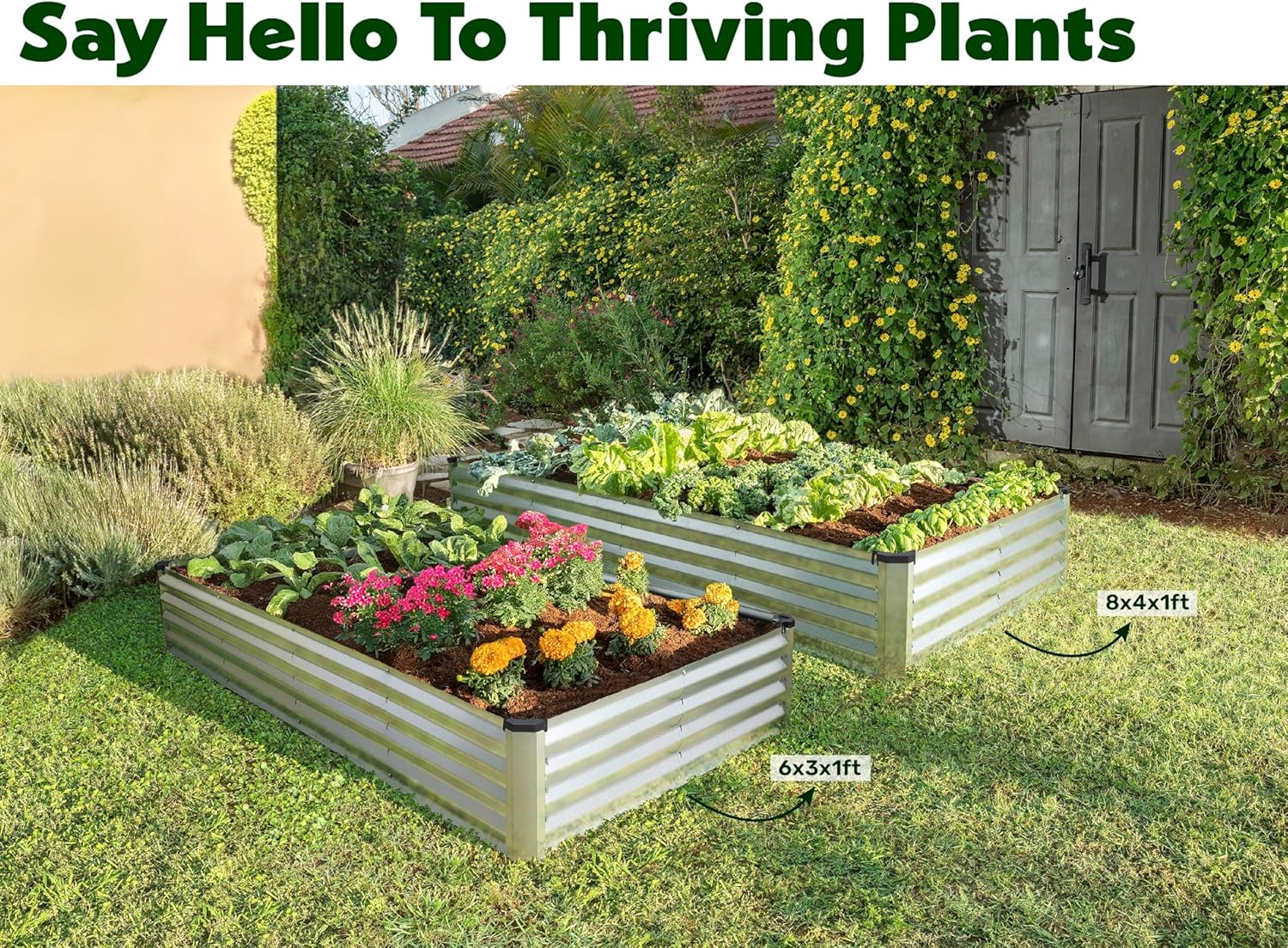 • Construido para durar: la cama de jardín Plant & Plot está tratada para soportar el desgaste diario debido a sus láminas de metal galvanizado y un revestimiento de zinc altamente duradero. Nuestros materiales de primera calidad garantizan que la cama de jardín sea resistente y mantenga su forma con el tiempo. Desde fuertes lluvias hasta calor extremo, nos aseguramos de proteger tu cama de jardín del óxido y la corrosión, por lo que es la elección perfecta si estás buscando una solución duradera.