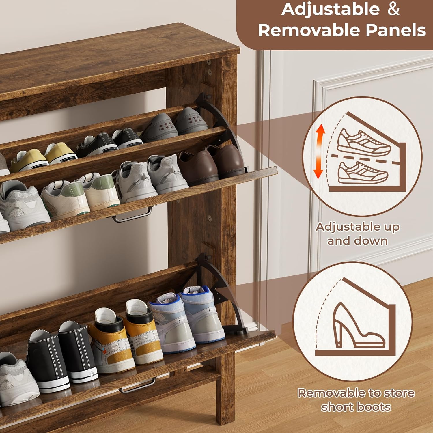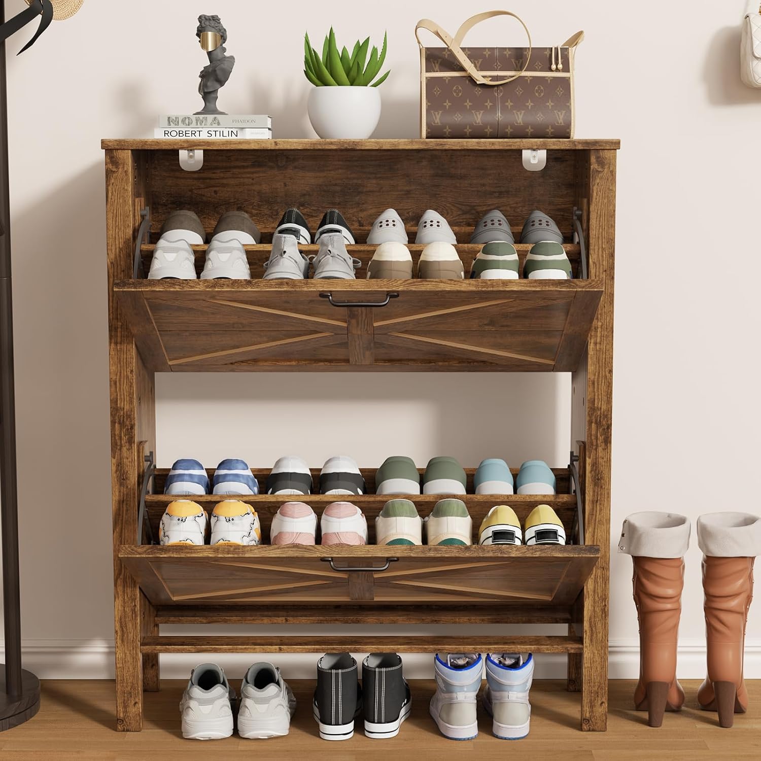 - Adiós a los pilotes de zapatos: el clóset de zapatos Barnyatoh viene con 2 cajones abatibles, y detrás de cada puerta tiene 2 capas de almacenamiento de zapatos, donde un total de 15 pares de zapatos se pueden ocultar a la vista. Como los estantes interiores son extraíbles, incluso puedes almacenar cualquier bota más alta.