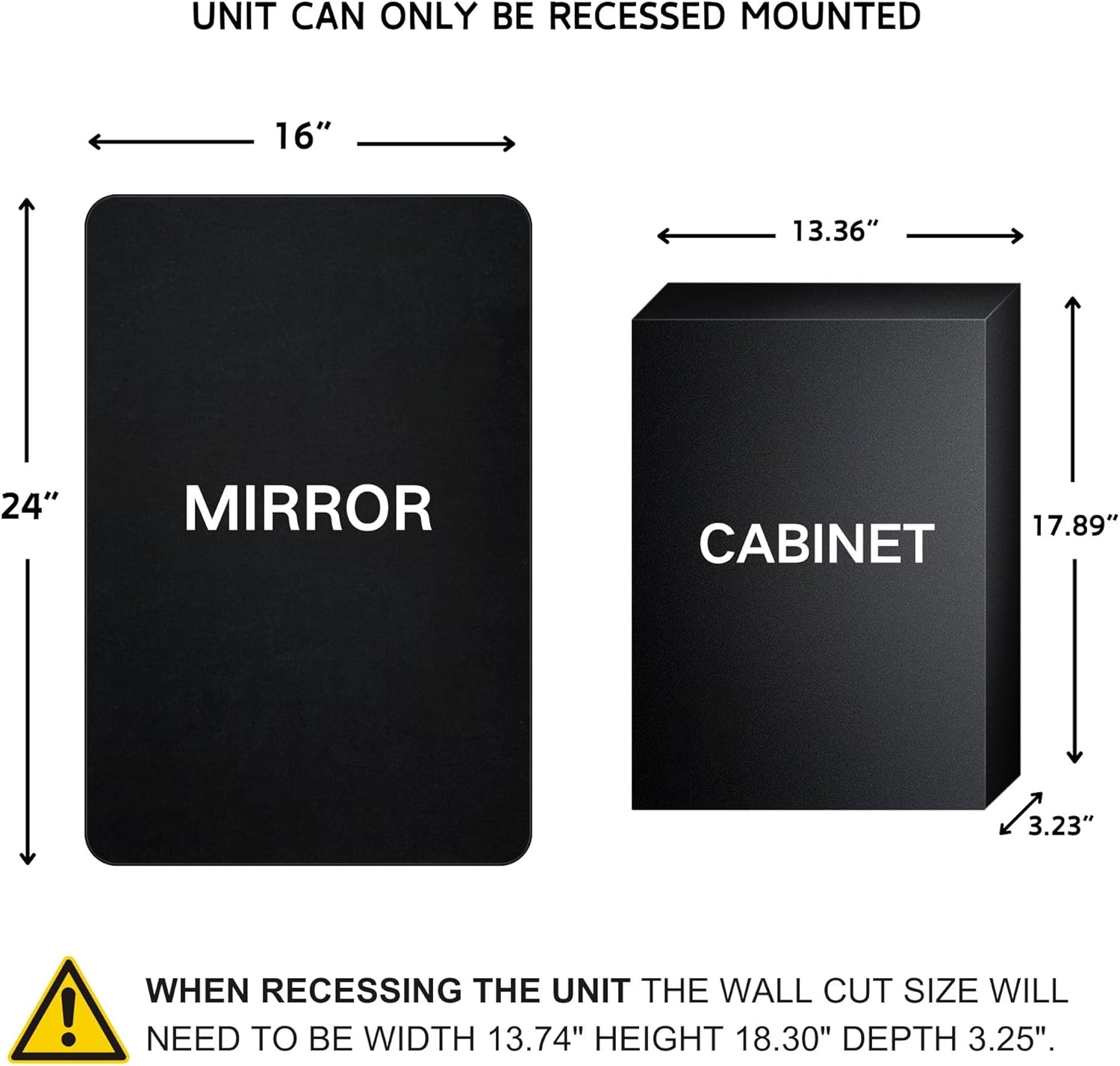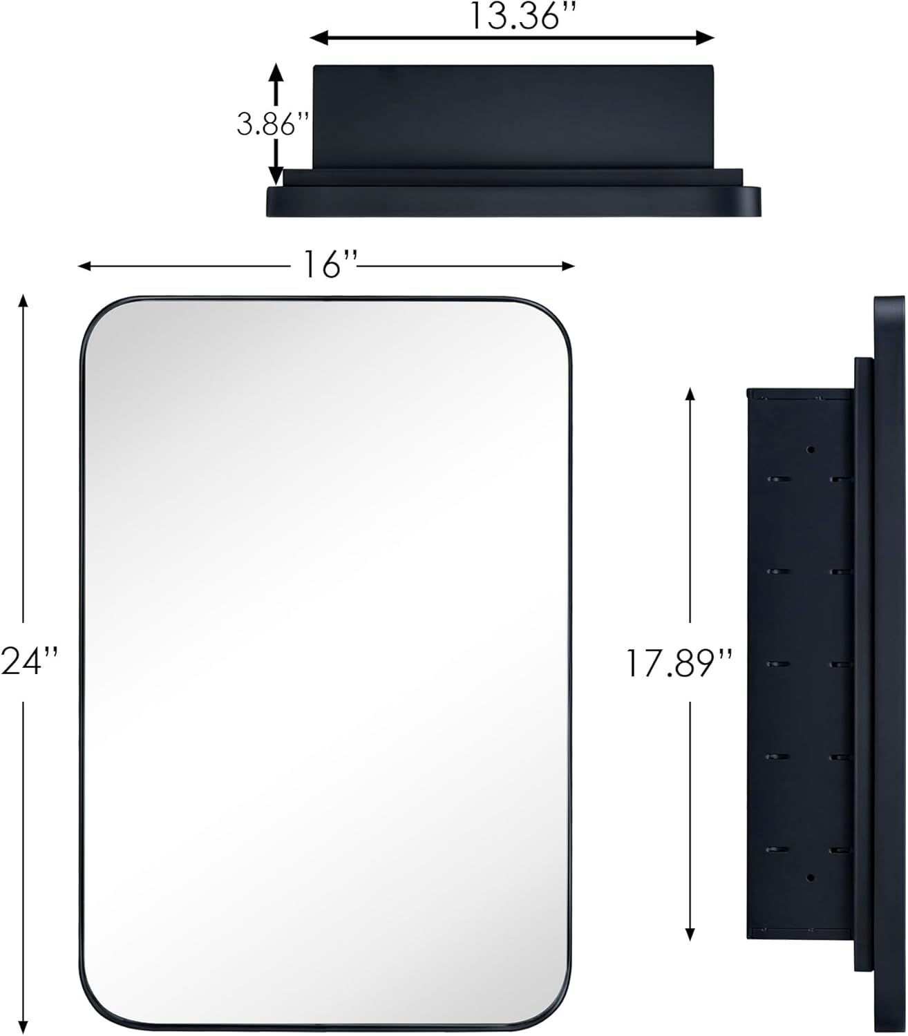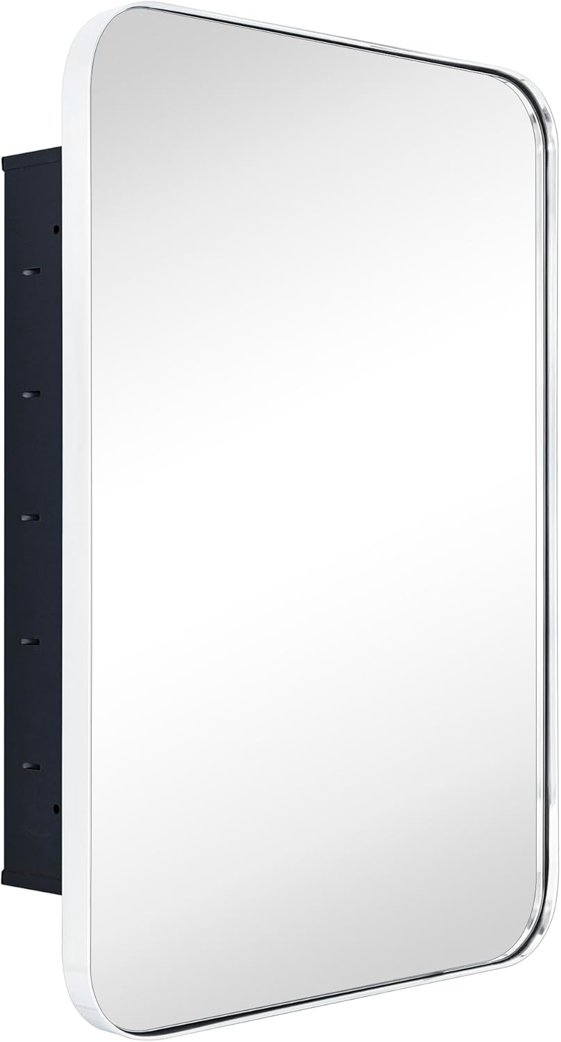 clóset de baño rectangular empotrado de níquel cepillado con espejo, acero inoxidable, marco de metal, rectangular, redondeado, con espejo, 16 x 24 pulgadas
