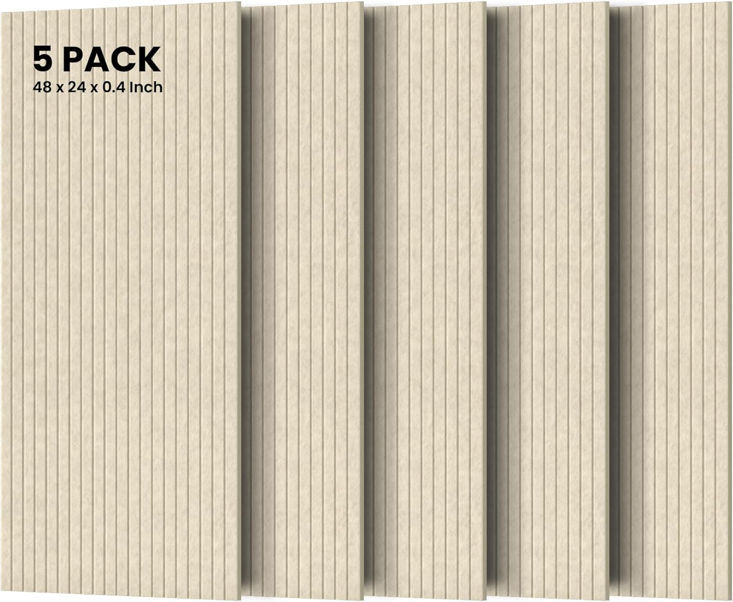Paquete de 5 paneles acústicos, 48 x 24 x 0.4 pulgadas a prueba de sonido para paredes, paneles de absorción de sonido de pared premium, paneles decorativos de amortiguación de sonido para sala.