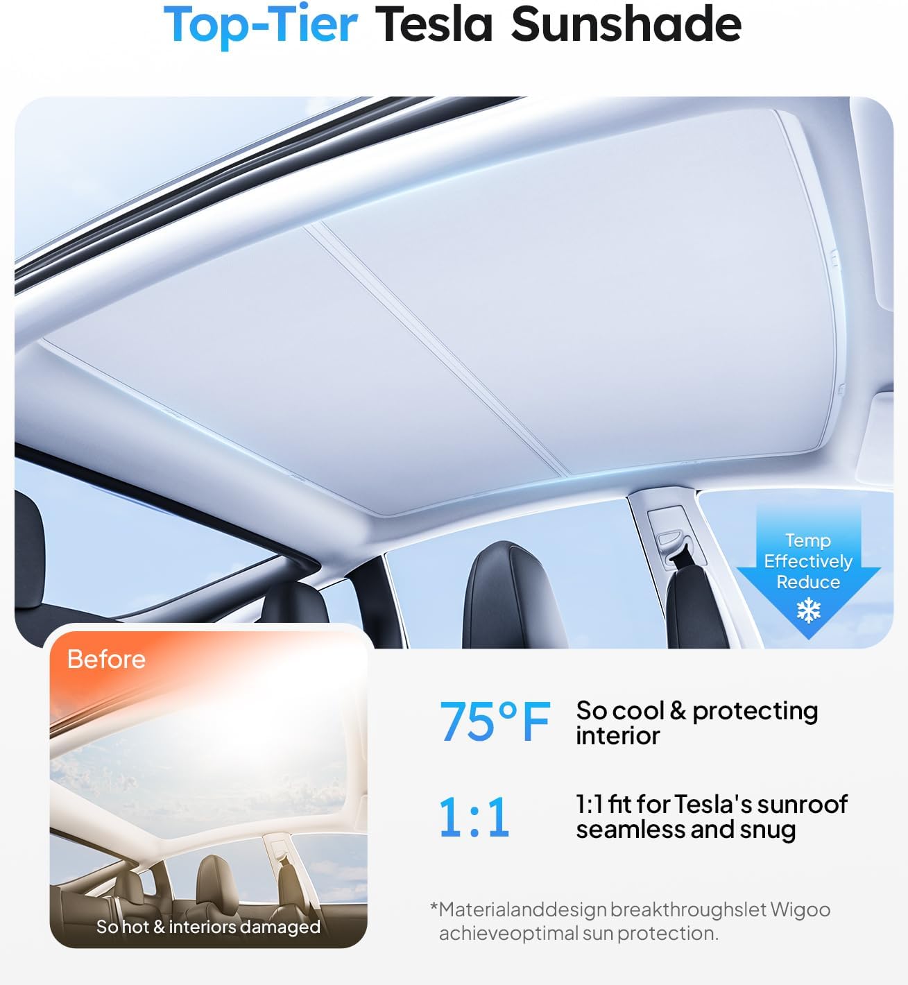 Wigoo. Toldo Tesla modelo Y de 2025 actualizado [Never Sag, Nano revestimiento de vidrio de hielo] 3 generaciones aislamiento térmico de vidrio, accesorios para Tesla Model Y 2020 ~ 2025, Tesla.
