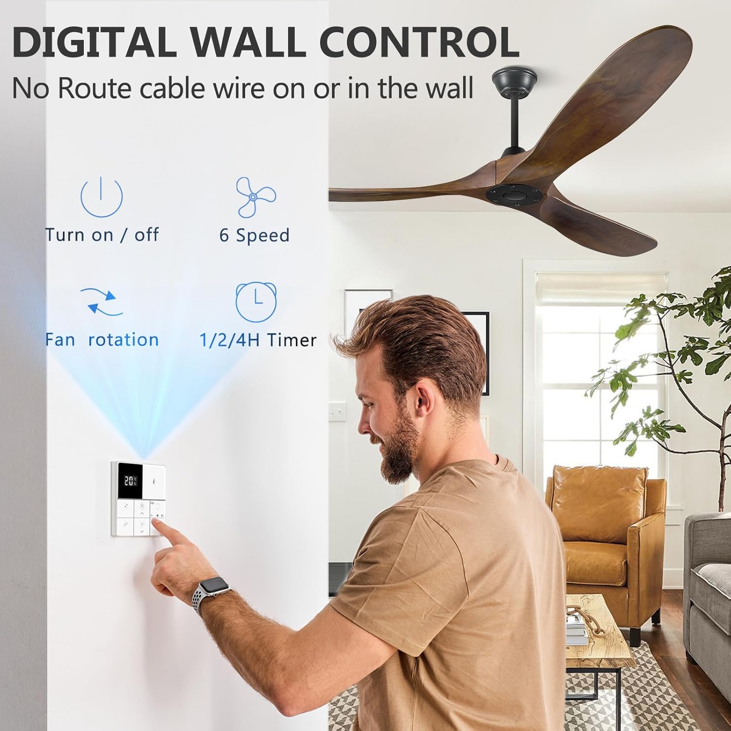 - Doble control fácil】Este ventilador de techo sin luz cuenta con un control de pared digital inalámbrico y control remoto. El control de pared logra todas las funciones del control remoto, puedes controlar la velocidad y el tiempo del ventilador tan pronto como ingreses a la habitación sin necesidad de escanear toda la habitación para encontrar el control remoto. El control adhesivo de pared se instala fácilmente sin problemas complejos de cableado