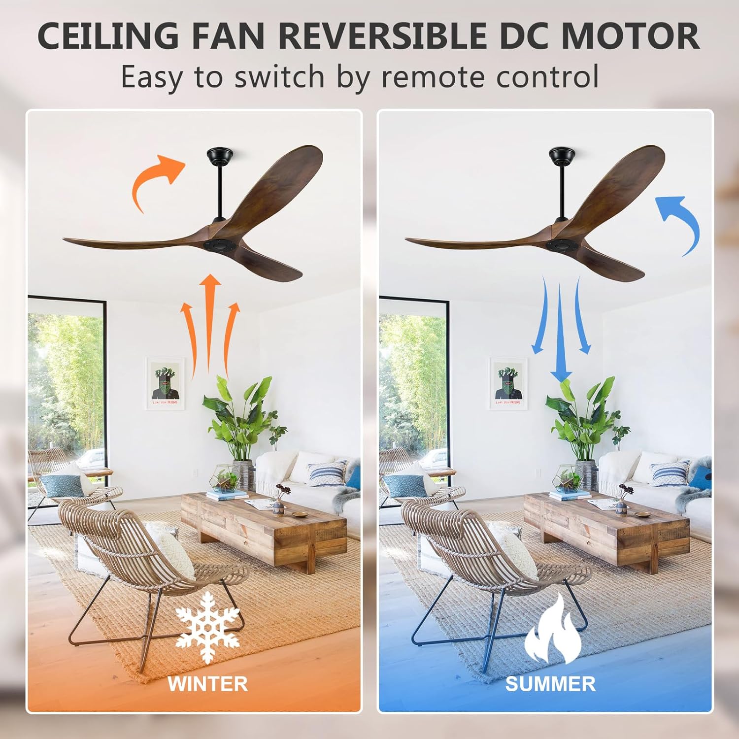 Eliora. Ventilador de techo de 72 pulgadas con mando a distancia e interruptor de pared, ventilador de techo grande de madera sin luz, 3 cuchillas, ventiladores de techo al aire última intervensión.